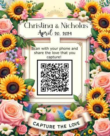 Christina contacted us for her wedding invitation and poster with QR code she wanted sunflowers and roses and we made her dream come true